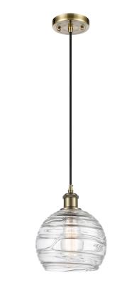 INNOVATIONS LIGHTING 516-1P-AB-G1213-8 BALLSTON DECO SWIRL 8 INCH ONE LIGHT CLEAR DECO GLASS MINI PENDANT, ANTIQUE...