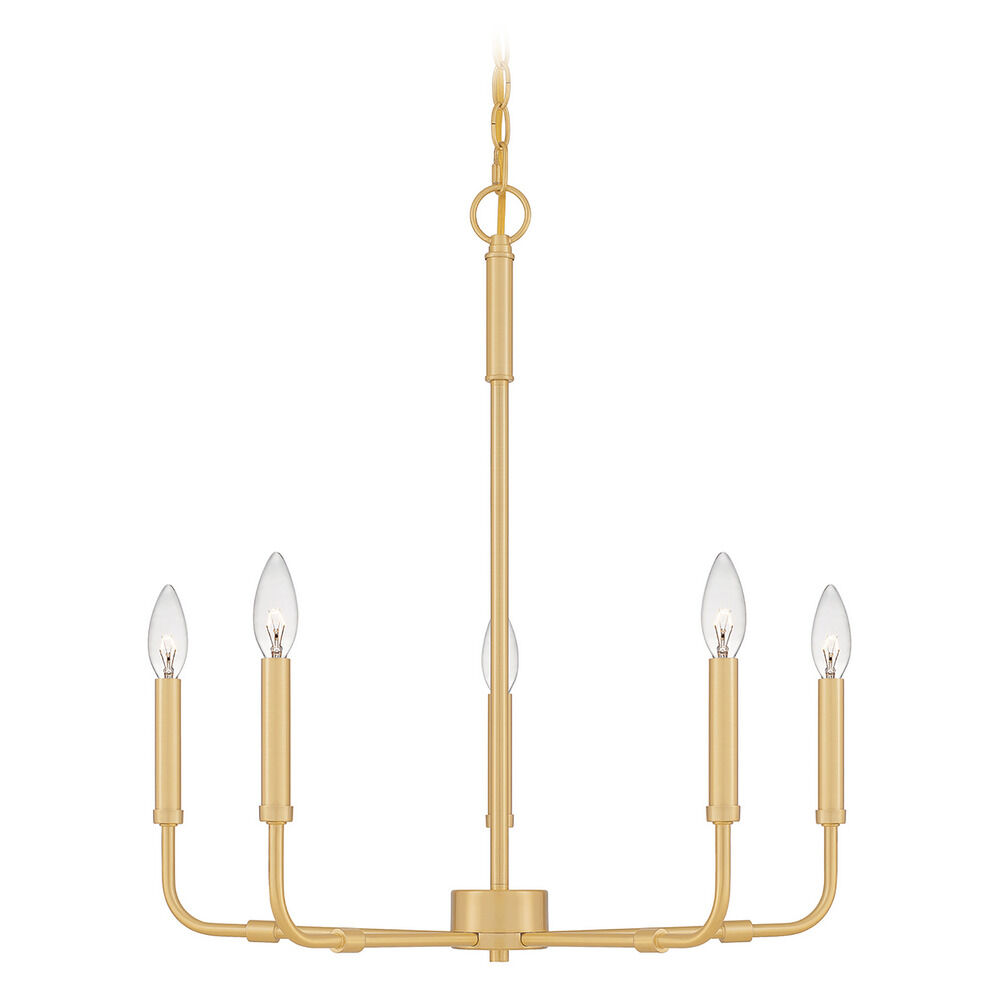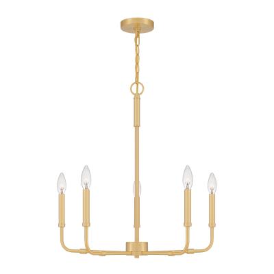 The Abner chandelier reflects a contemporary twist. With all the hallmarks of a classic chandelier, its pared-back lines and industrial-inspired materials (available in polished chrome, aged brass, or matte black), speak to a modern design aesthetic brimming with character. Five Light Chandelier Collection: Abner Finish: Aged Brass Width: 24.00`` Height: 25.25`` Length: 24.00`` Safety Listing: ETL Bulbs: 5 X B10 60.00W
