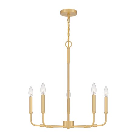 Quoizel ABR5024AB Abner Transitional Industrial-Inspired Round Candle Chandelier, 5-Light 300 Total Watts, 25" H x 24" W, Aged Brass