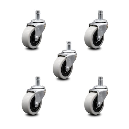 2 Inch Thermoplastic Rubber Wheel 7/8 Grip Ring Stem Caster SCC, 5PK