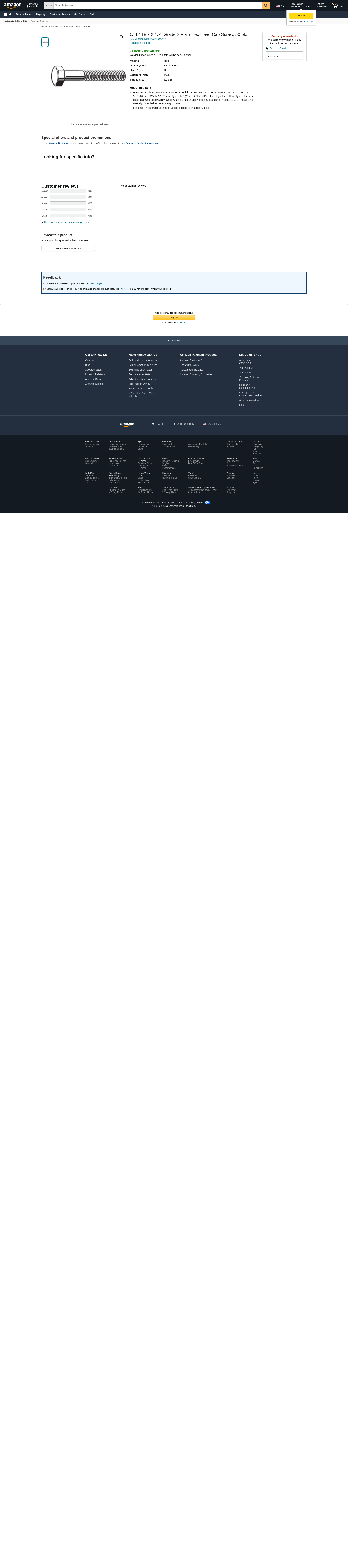 | Feature | Price For: Each Basic Material: Steel Head Height: 13/64" System of Measurement: Inch Dia./Thread Size: 5/16"-18 Head Width: 1/2" Thread Type: UNC (Coarse) Thread Direction: Right Hand Head Type: Hex Item: Hex Head Cap Screw Screw Grade/Class: Grade 2 Screw Industry Standards: ASME B18.2.1 Thread Style: Partially Threaded Fastener Length: 2-1/2" |