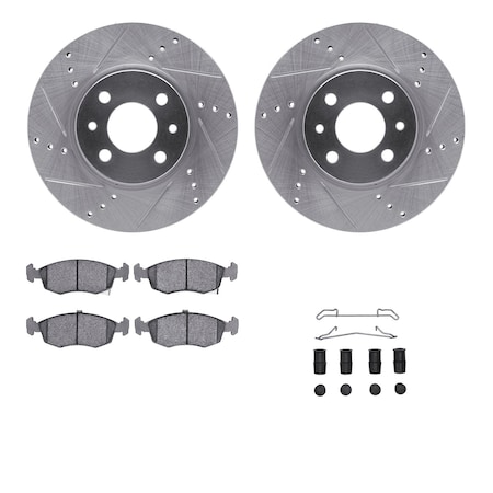 Dynamic Friction Company Front Brake Rotors-Drilled and Slotted-Silver with 3000 Series Ceramic Brake Pads includes Hardware 7312-07004