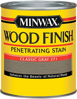 Minwax Wood Finish is a penetrating oil-based wood stain, which provides beautiful rich color that enhances the natural wood grain. It applies easily, absorbs deep into the pores of the wood and is ideal for staining unfinished wood furniture, cabinets, doors, trim, molding and hardwood floors.; ; Brand Name: Minwax Sub Brand: Wood Finish Transparency: Semi-Transparent Color: Classic Gray Base Type: Oil-Based Product Type: Penetrating Wood Stain Container Size: 1 qt Tintable: No Application Method: Brush/Cloth Time Before Recoating: 4 hr VOC Level: 522.69 g/L Coverage Area: 150 sq ft UV Resistant: No Sealer: No Indoor or Outdoor: Indoor Color Family: Gray Clean Up: Mineral Spirits or Paint Thinner