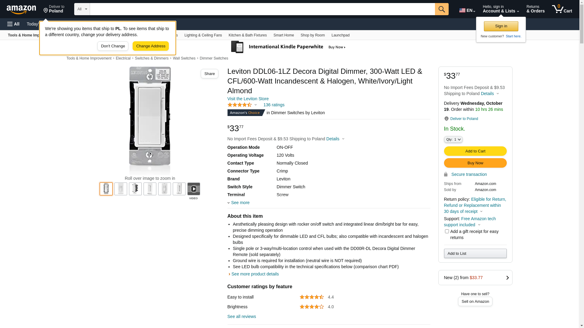 | kscdirect.com | LEV DDL06-1LZ | 1 | 1 | 1 @ $37.84 | |