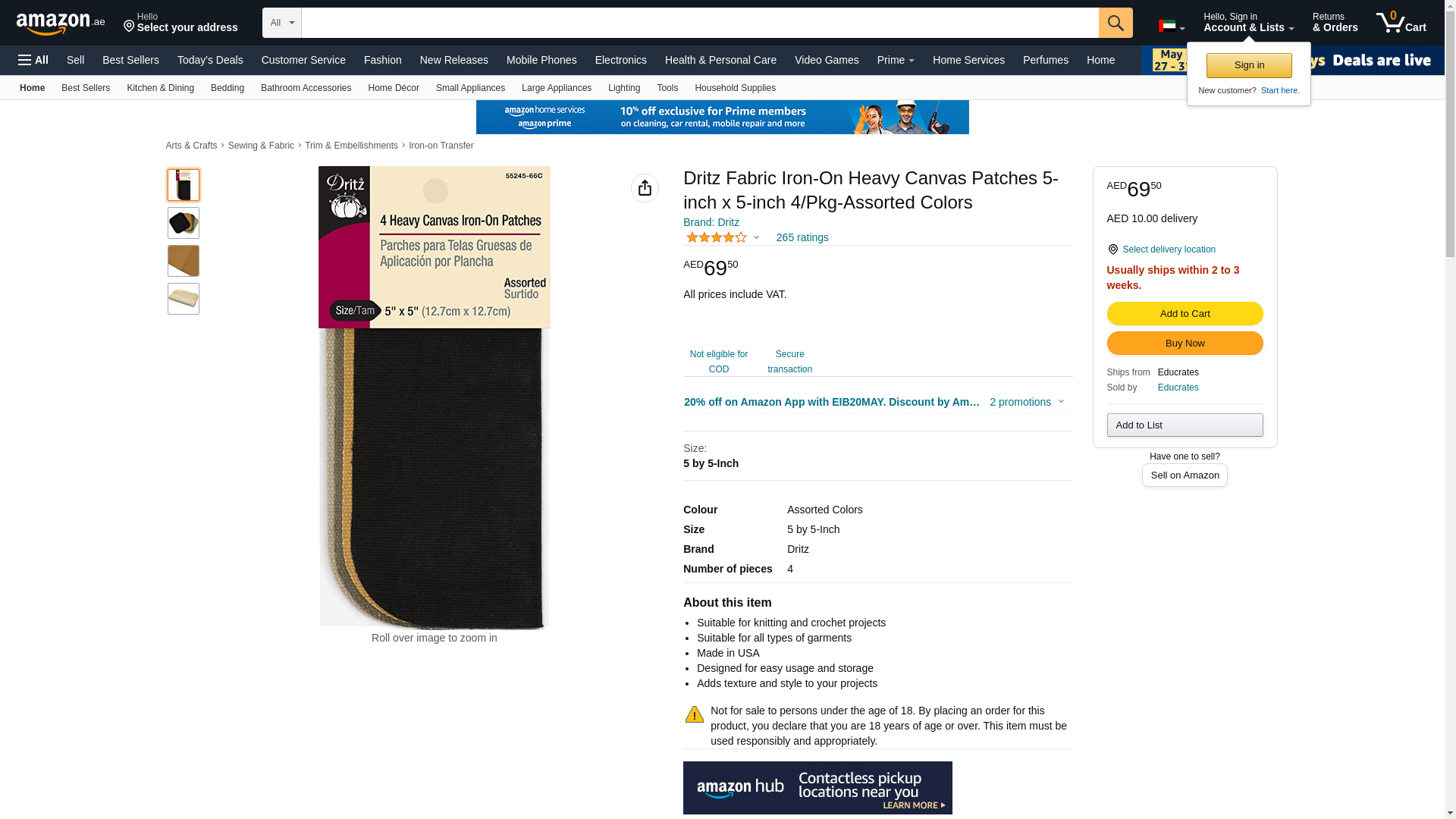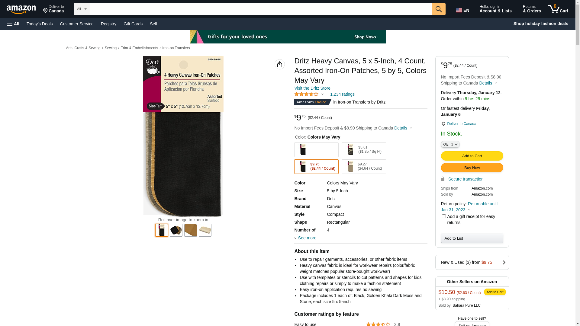 Dritz Heavy Canvas, 5 x 5, 4 Count, Assorted Iron-On Patches, 5 by 5-Inch, Colors May Vary