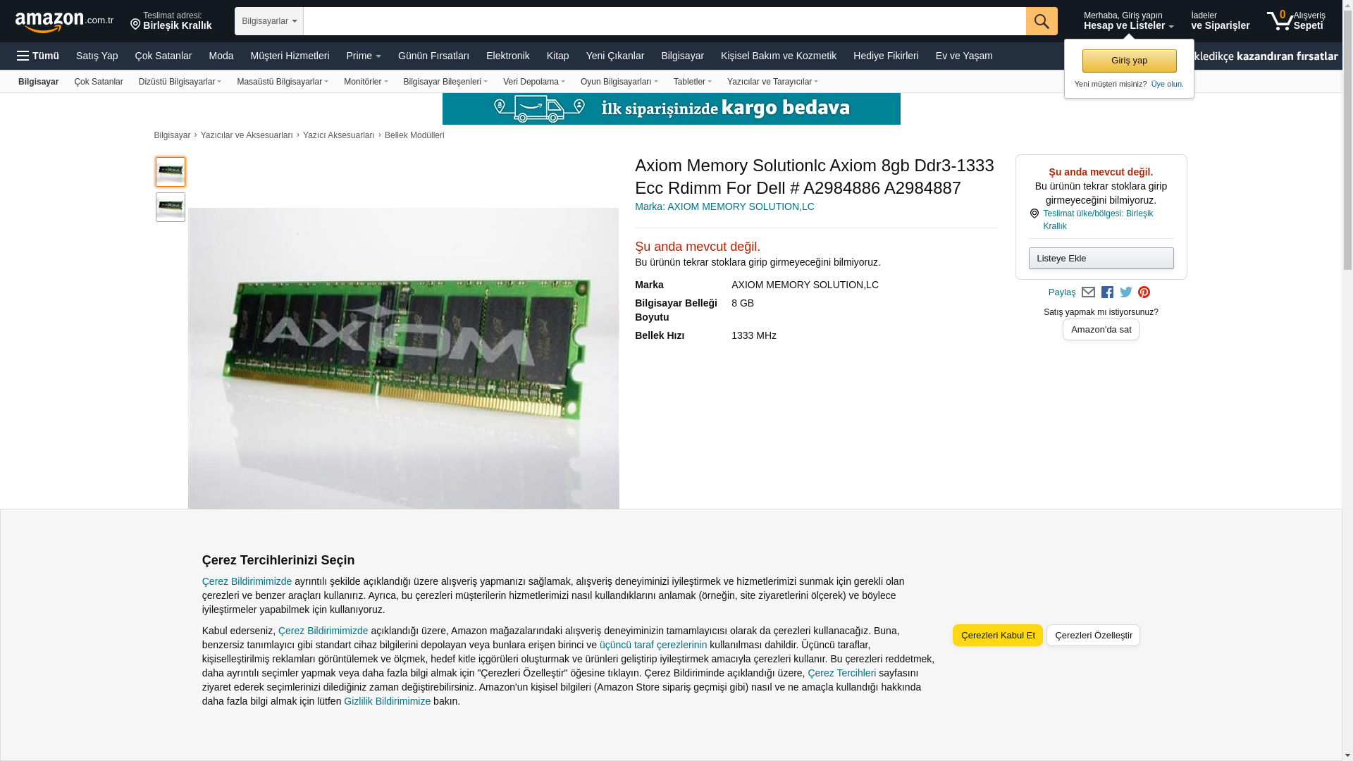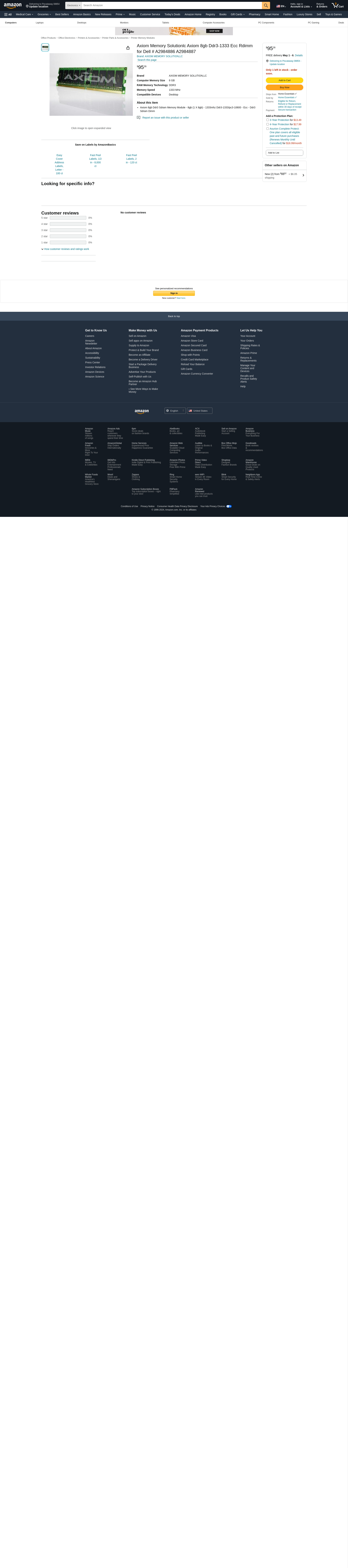 Axiom Memory Solutionlc Axiom 8gb Ddr3-1333 Ecc Rdimm for Dell # A2984886 A2984887