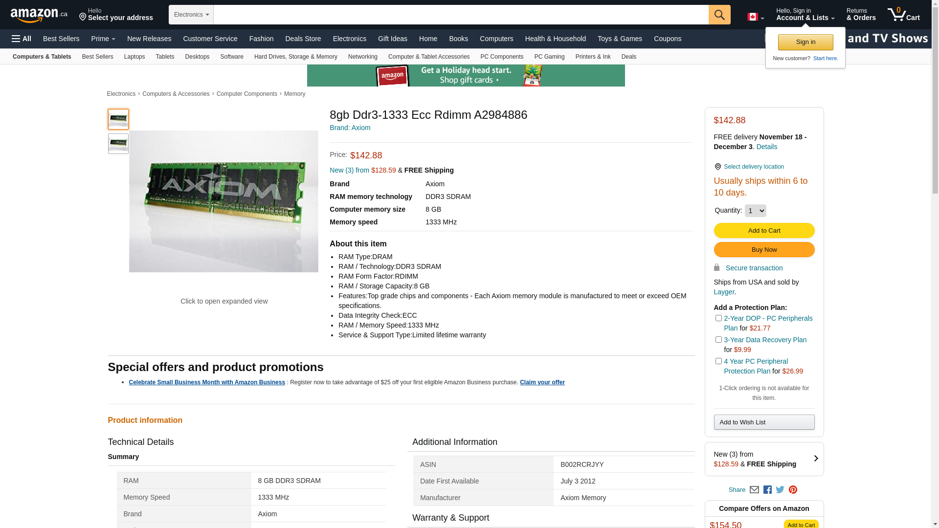 - Axiom 8gb Ddr3 Sdram Memory Module - 8gb (1 X 8gb) - 1333mhz Ddr3-1333/pc3-10600 - Ecc - Ddr3 Sdram Dimm