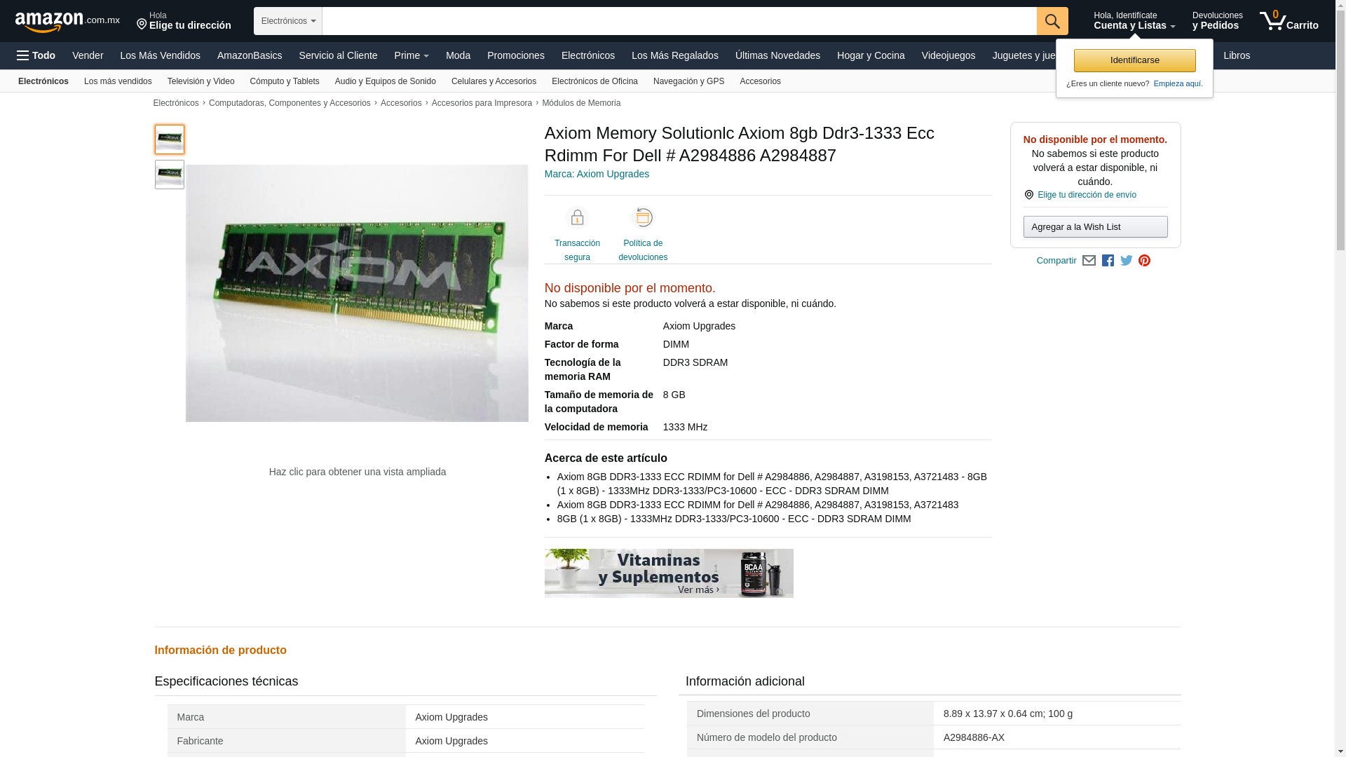 | Manufacturer | AXIOM MEMORY SOLUTIONLC |