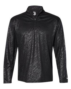 Badger B75685507 Line Embossed Quarter-Zip Long Sleeve T-Shirt, Black Line Embossed - 2XL