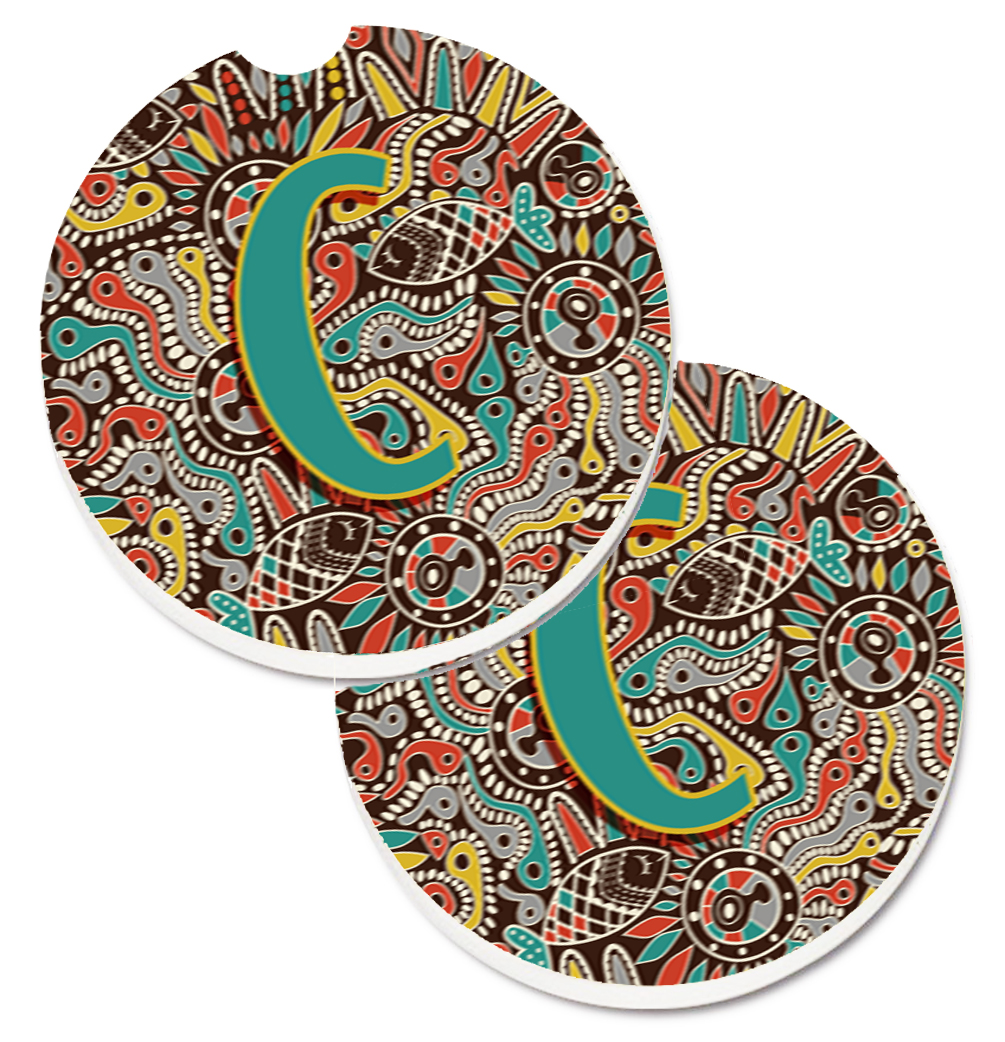 Caroline's Treasures CJ2013-CCARC Letter C Retro Tribal Alphabet Initial Set of 2 Cup Holder Car Coasters, Large, Multicolor