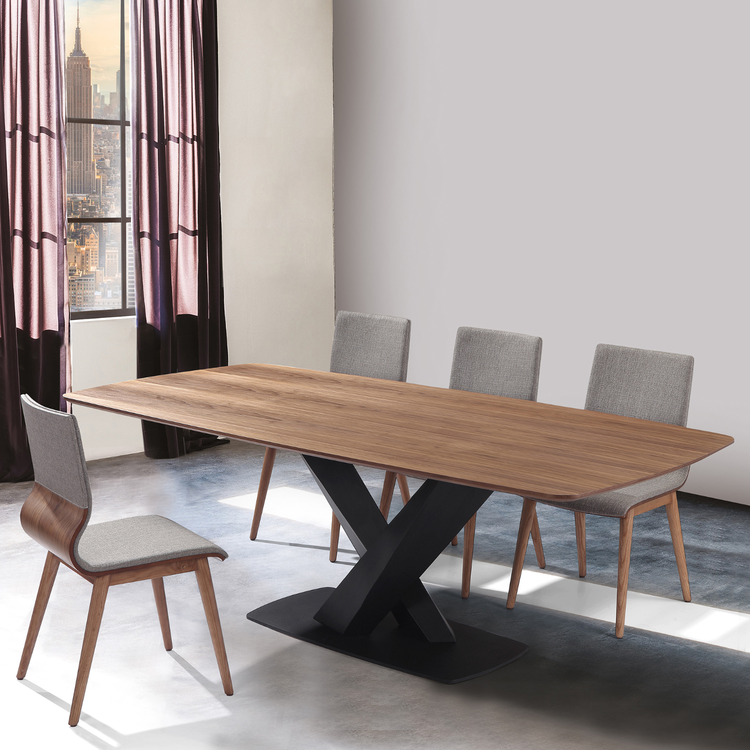SETERDIWAGY Mid-Century Walnut Wood 5 Piece Dining Set with Table and 4x Side Chairs