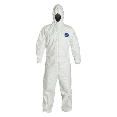 Dupont TY127SWHMD002500 Coveralls with Hoods, Serged Seam, Medium, White (Pack of 25)