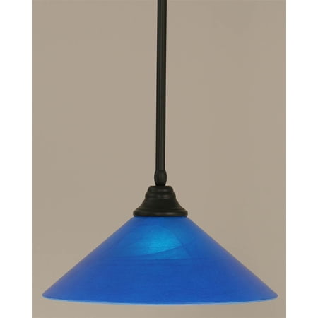 Toltec Lighting 26-MB-415 Stem Pendant with Hang Straight Swivel with 16" Blue Italian Glass, Matte Black Finish