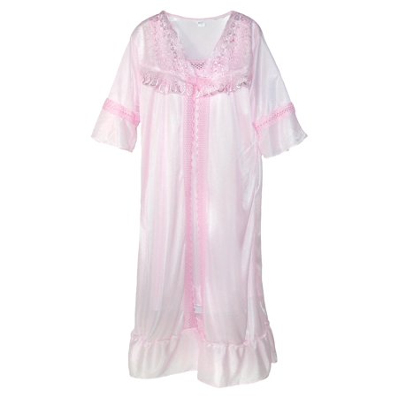 <ul> <li>Gown and robe set</li> <li>Crochet trim on nightgown</li> <li>Ruffle bottom gown</li> </ul>