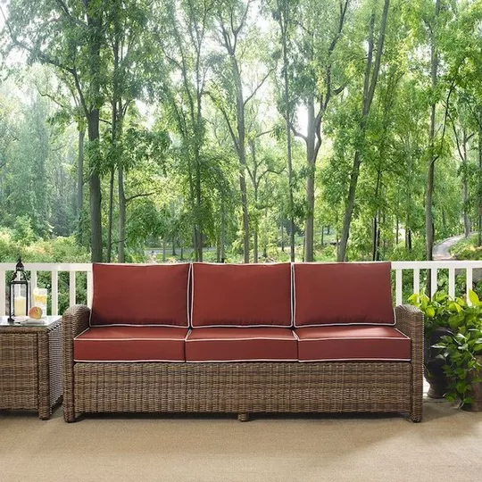 CROSLEY KO70049WB-SG BRADENTON 80 1/2 INCH OUTDOOR WICKER SOFA WITH WEATHERED BROWN FRAME, SANGRIA