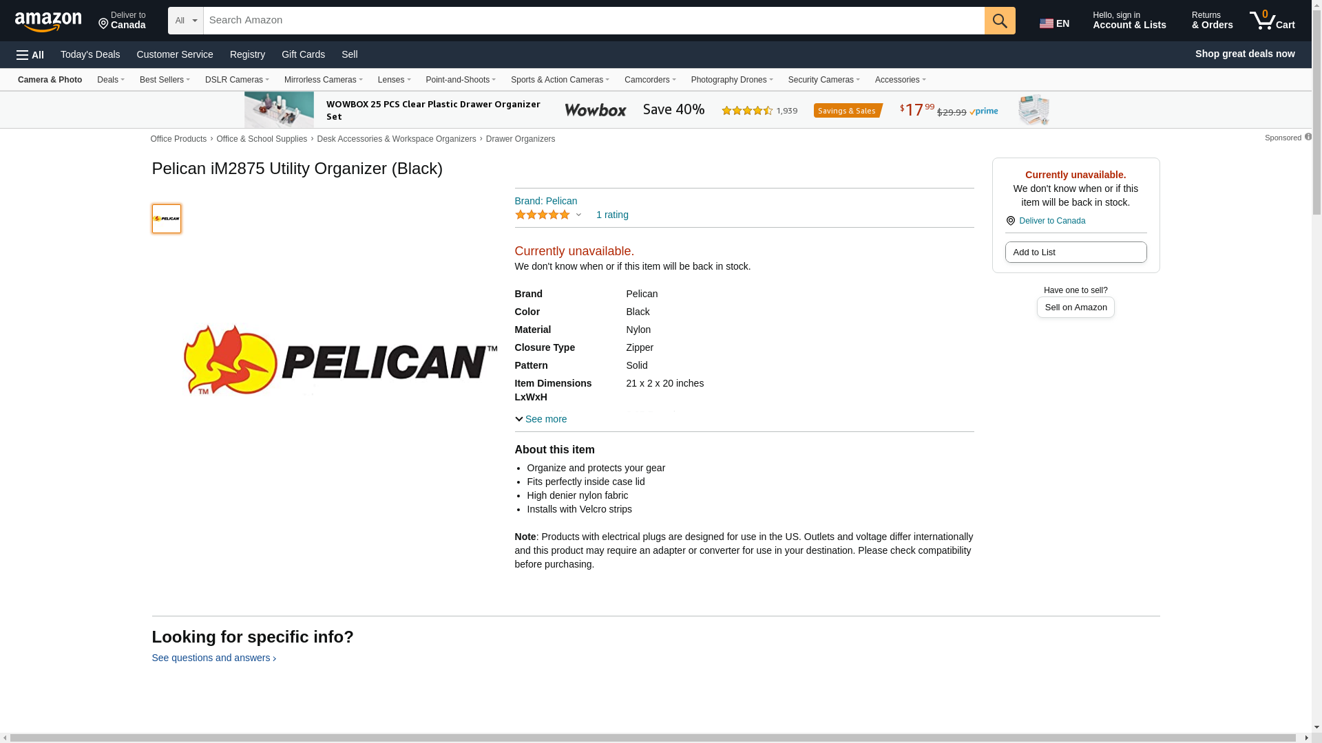 Pelican Storm Case IM2875 Utility Organizer from SWPS.com