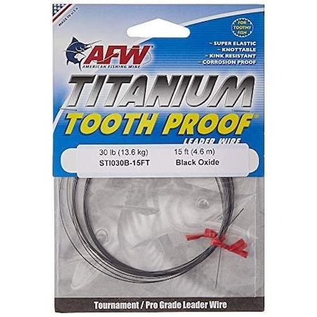 - TITANIUM: Made from an advanced titanium alloy, this leader material has the uncanny kink resistance and flexibility needed to drag big fish in from deep waters. The smoke-black finish hides beneath water ready to capture Barracuda, King Mackerel, Wahoo and other toothy Big Game Fish.