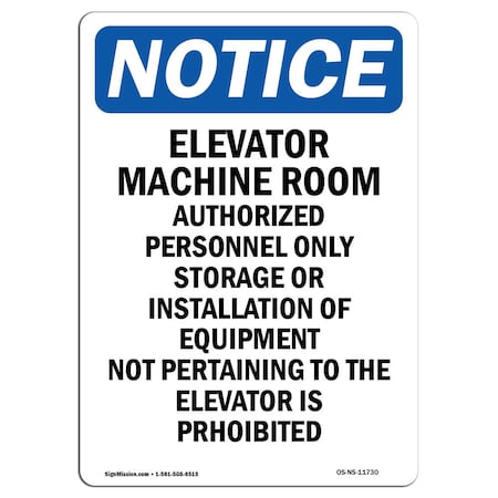 OSHA Notice Sign, Elevator Machine Room Authorized, 14in X 10in Decal