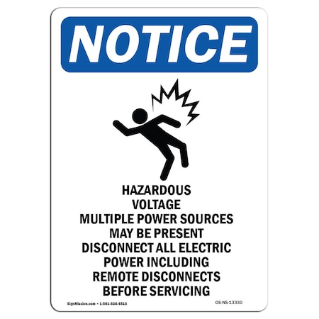 OSHA Notice Sign, Hazardous Voltage With Symbol, 14in X 10in Decal