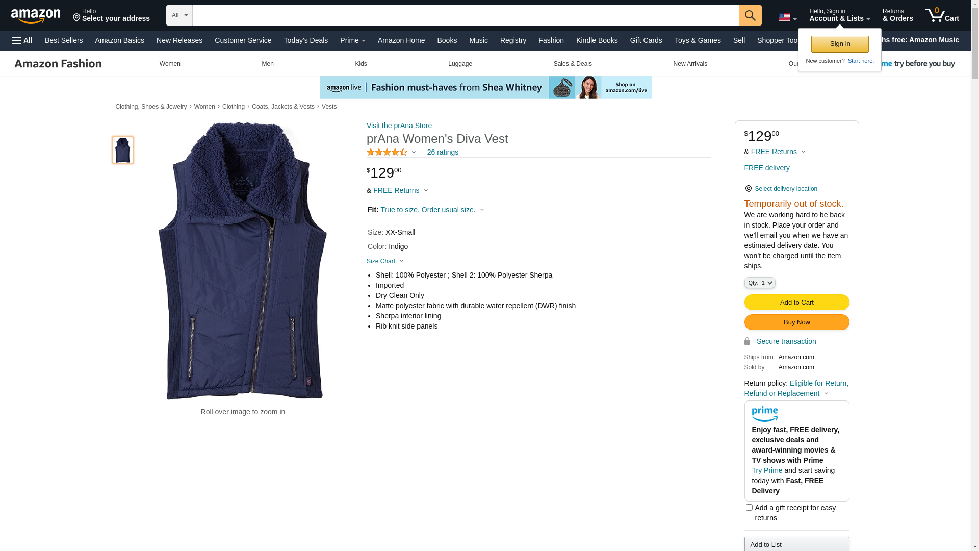 prAna Women's Diva Vest, Medium, Indigo