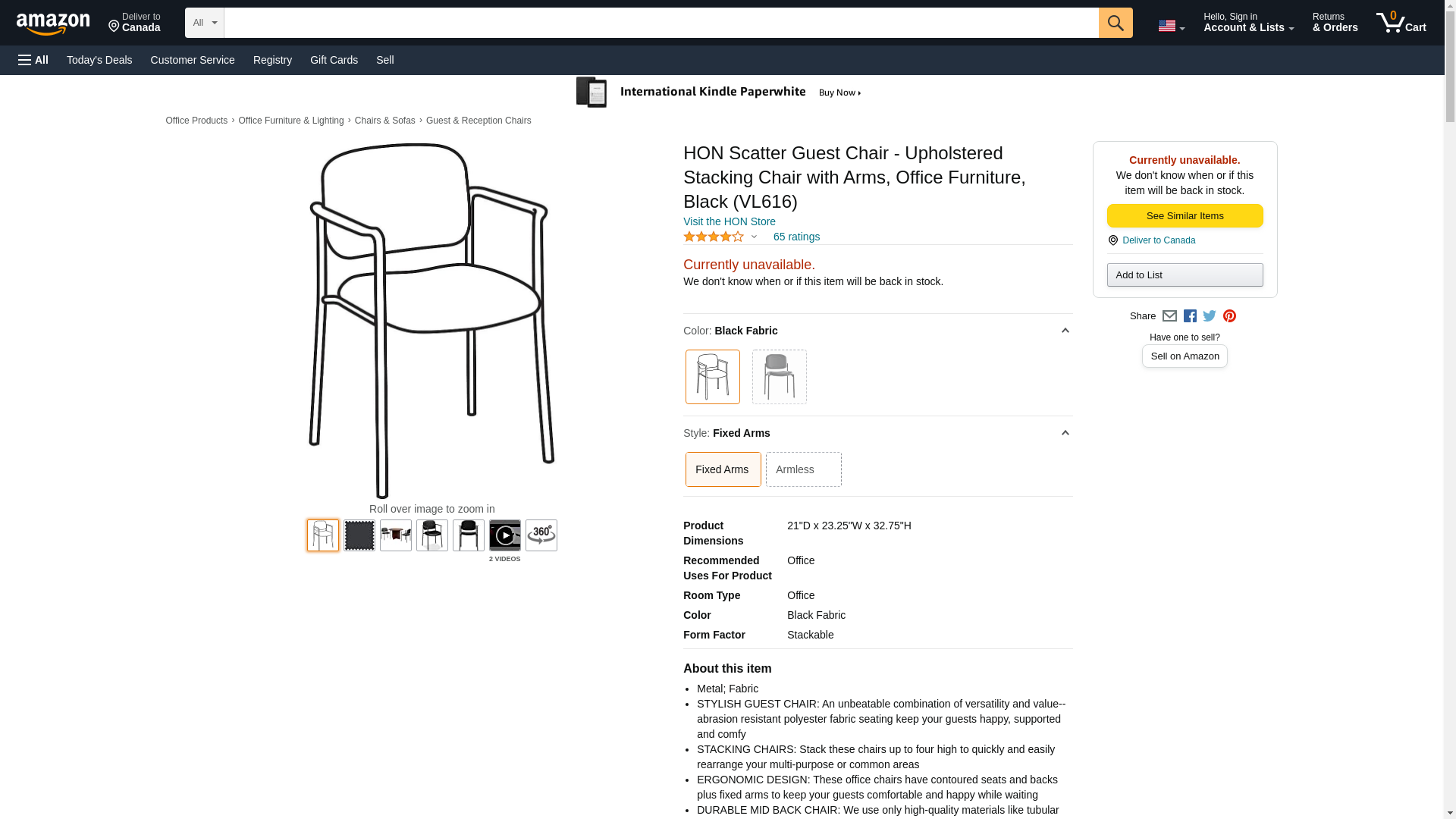 HON Scatter Guest Chair - Upholstered Stacking Chair with Arms, Office Furniture, Black (VL616)