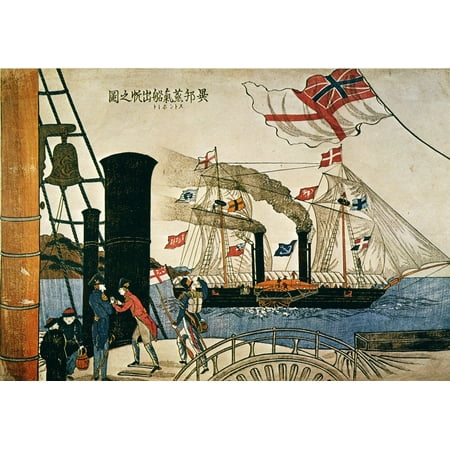 Japan Nagasaki Harbor Nforeign Steamships In Nagasaki Harbor Japanese Bai-Oban Color Prints C1850 Rolled Canvas Art - (24 x 36)