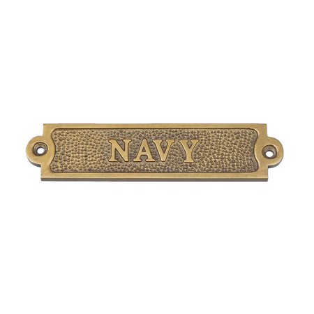 --Ideal for posting on a boat, in a boathouse, or any nautical themed room, this antique brass Navy sign 6 inch proudly displays your connection to the sea. Handcrafted from solid brass with an antique brass finish and a stylish brass framing, this beautifully shining sign has a classy nautical appeal with bold and clear lettering on an antique brass face.----NOTE: Wall mounting hardware not included.---- Elegant solid brass design-- -- Antique brass finish-- Handcrafted with precise detail-- -- Textured solid brass background-- ----Sign requires two screws for easy mounting -not included-