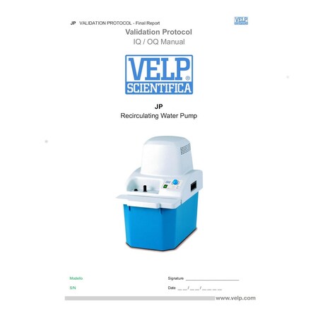 VELP Scientifica A00000253 IQ/OQ Manual for Model JP Recirculating Water Pump
