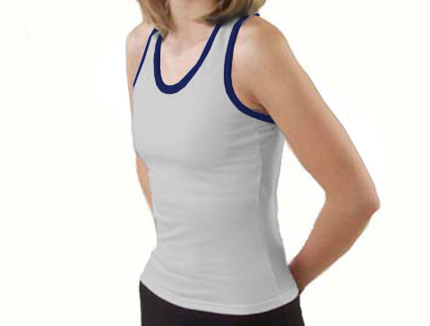 Pizzazz Performance Wear 9800T -GRENAV-AL 9800T Adult Racer Back Top with Trim - Grey with Navy - Adult Large
