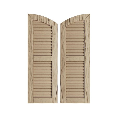 Ekena Millwork SHULVL15X60RWPR (55" Low Side) Timberthane Two Equal Louver w/Elliptical Top Faux Wood Shutters (Per Pair), Primed Tan, 15" W x 60" H