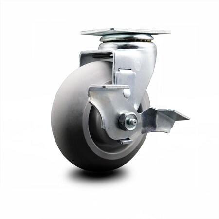 Swivel Top Plate Caster – Gray 5 Inch by 2 Inch Thermoplastic Rubber Donut Tread Wheel – Ball Bearing – 450 lbs. Capacity Per Caster – Includes Top Locking Brake - Service Caster Brand