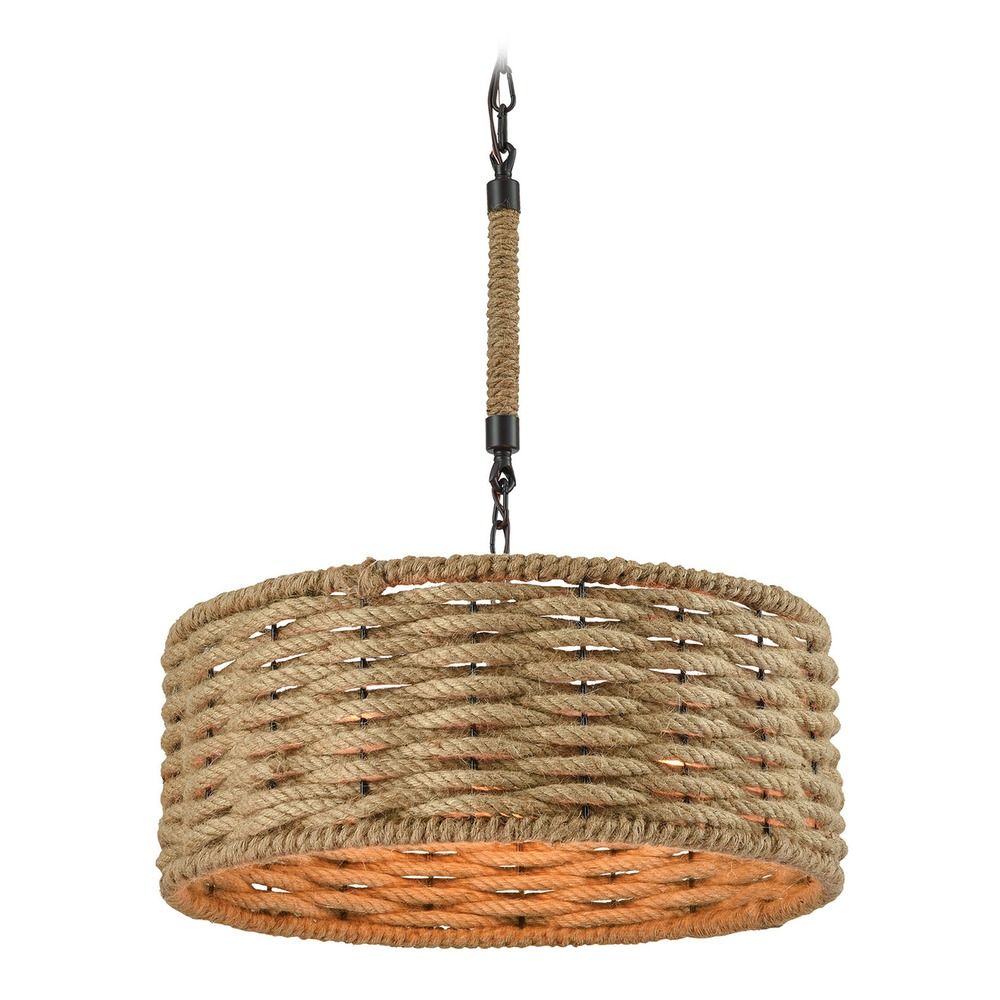 - Features Oil Rubbed Bronze Finish With Natural Wrapped Rope Shade