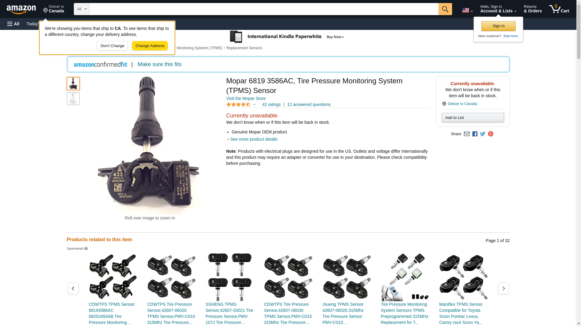 Mopar 6819 3586AC, Tire Pressure Monitoring System (TPMS) Sensor