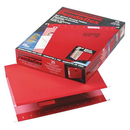 Pendaflexamp;reg; 2amp;quot; Capacity Reinforced Hanging File Folders, Kraft, Letter, Red, 25 per Box