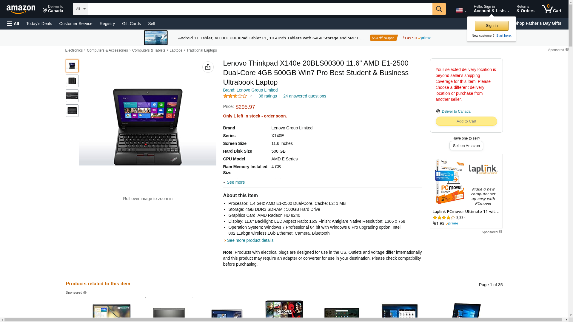 Lenovo Thinkpad X140e 20BLS00300 11.6" AMD E1-2500 Dual-Core 4GB 500GB Win7 Pro Best Student & Business Ultrabook Laptop
