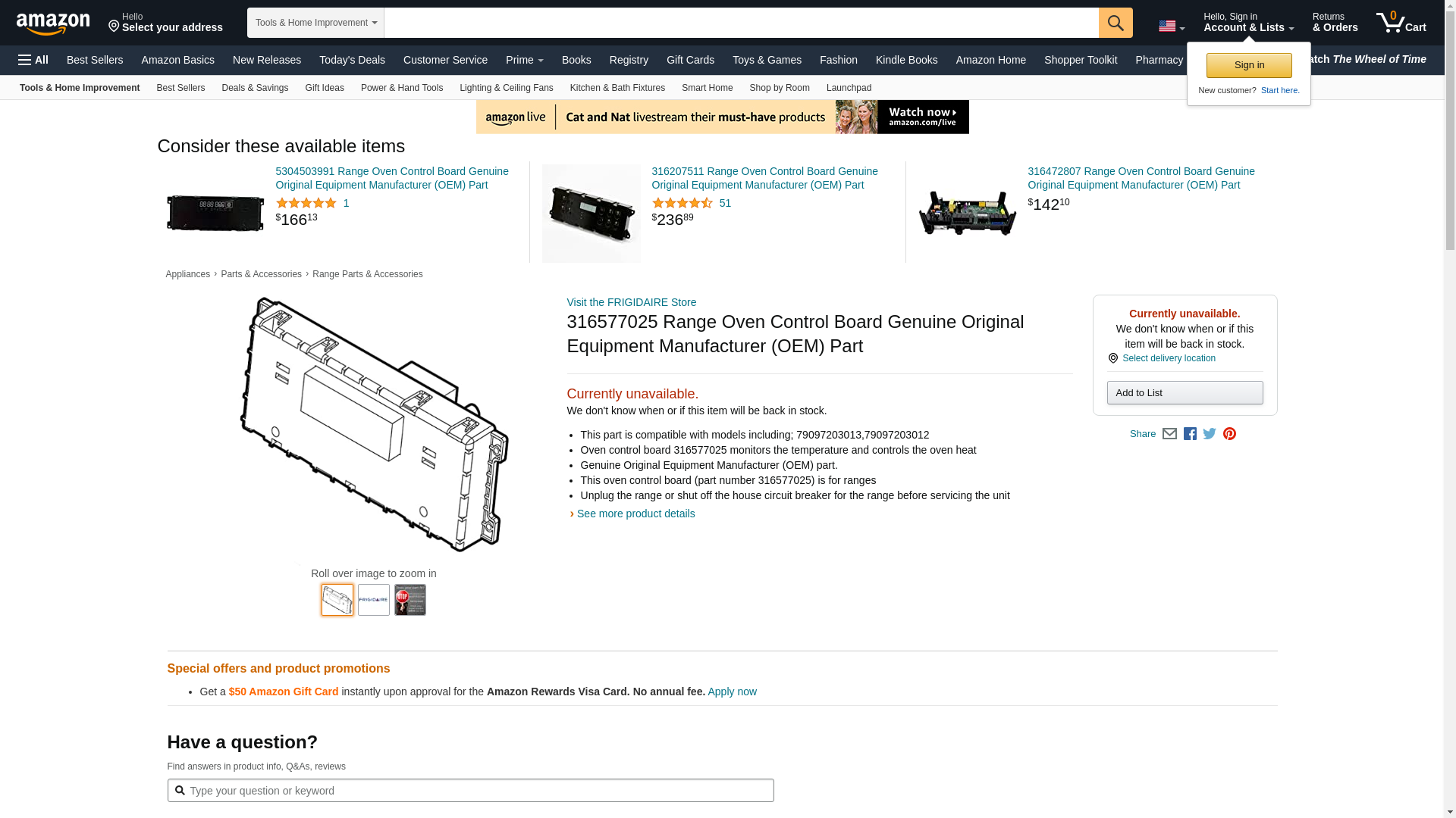 ![]() midwestapplianceparts.com | 316577025-WCI-P | 1 | Current Unavailable - No ETA Available | 1 | 1 @ $263.49 |