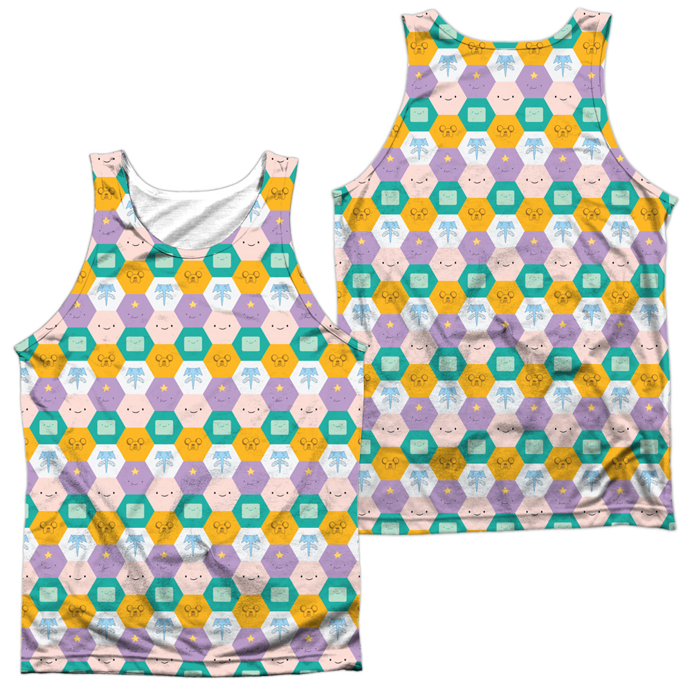 Trevco CN453FB-TKPP-3 Adventure Time & Hexagon Pattern Front & Back Print Adult Polyster Tank Top, White - Large