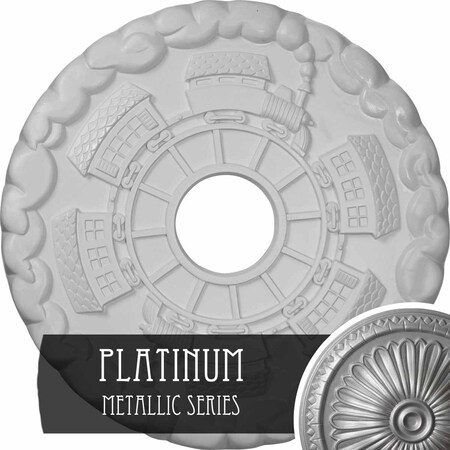 Ekena Millwork CM18KDPLS Kendall Train Station Ceiling Medallion, 18 1/2"OD x 3 7/8"ID x 1"P, Hand-Painted Platinum