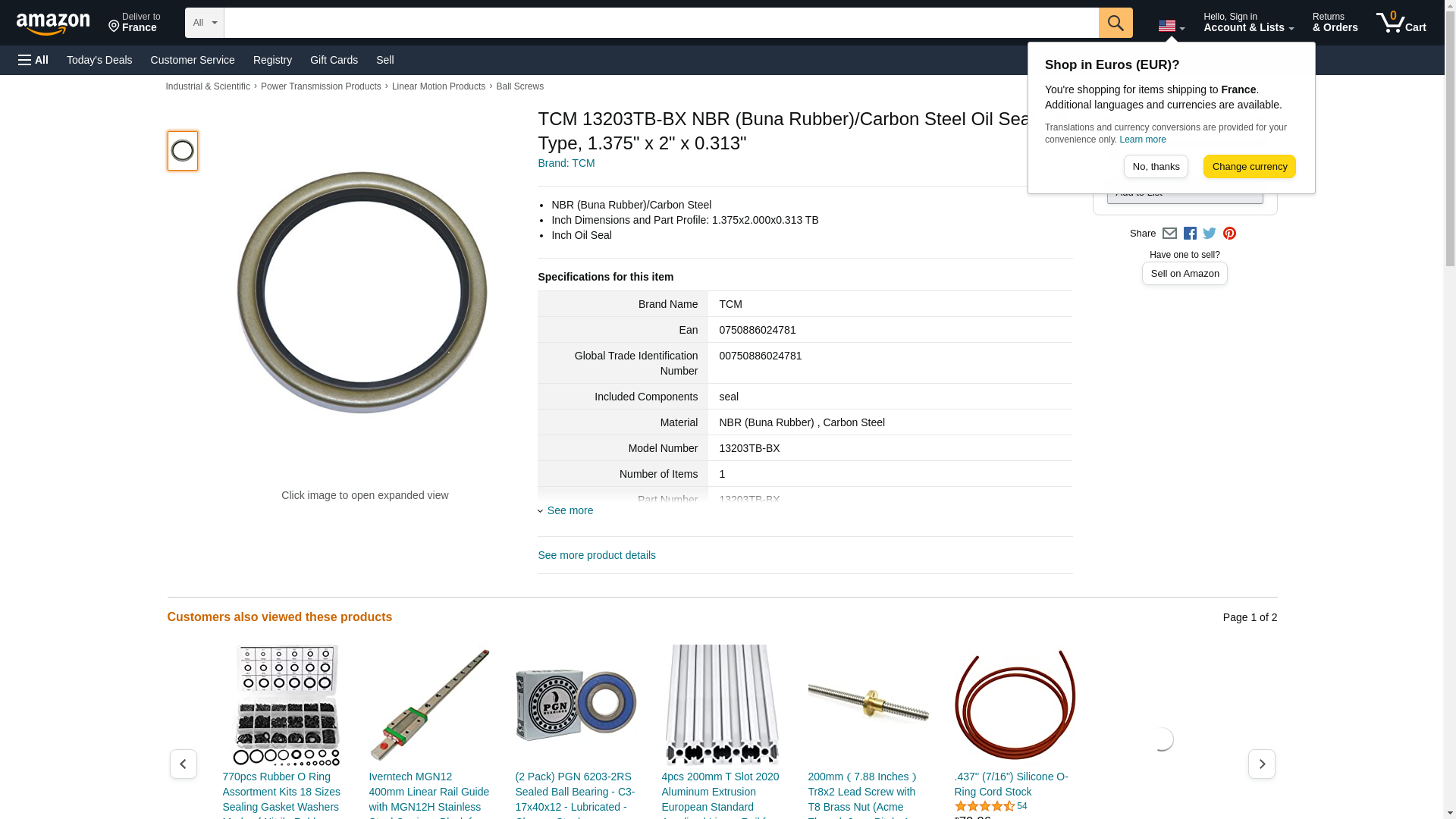 TCM 13203TB-BX NBR (Buna Rubber)/Carbon Steel Oil Seal, TB Type, 1.375" x 2" x 0.313"