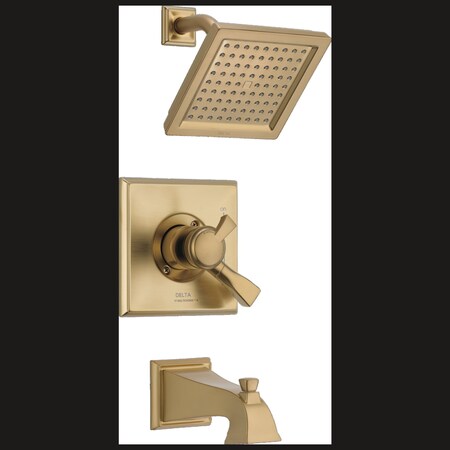 ADA Compliant: Yes. Diverter Included: Yes. Diverter Location: Tub Spout. Drain Included: No. Escutcheon Dimensions: 7". Escutcheon Included: Yes. Faucet Type: Tub & Shower Faucet Sets. Finish: Bronze. Handle Material: Metal. Handle Style: Lever. Handles Included: Yes. Handshower Included: No. Hose Included: No. Includes: Trim, tub spout, showerhead, handle. Inlet Connection: 1/2". Made in: U.S.A.. Manufacturer Finish: Champagne Bronze. Manufacturer Warranty: Limited Lifetime. Manufacturers Collection Name: Dryden. Mounting Location: Wall Mount. Number of Handles: 1. Other Features: Monitor feature protects from sudden changes in hot or cold water pressure, MultiChoice Universal Valve allows for future upgrades without altering plumbing, Touch-Clean showerhead, Volume Control provides seperate controls for temperature and volume, Brilliance Finish is designed to not corrode, tarnish or discolor. Pause Control: No. Pressure Balanced: Yes. Requires: Rough in valve R10000-UNWS. Rough-In Valve Included: No - Trim Only. Rough-In Valve Required: R10000-UNWS. Scald Guard: Yes. Showerhead Flow Rate: 2.5 GPM.