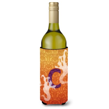 Caroline's Treasures CJ1040-CLITERK Halloween Ghost Letter Wine Bottle Hugger Bottle Cooler Sleeve Hugger Machine Washable Collapsible Insulator Beverage Insulated Holder