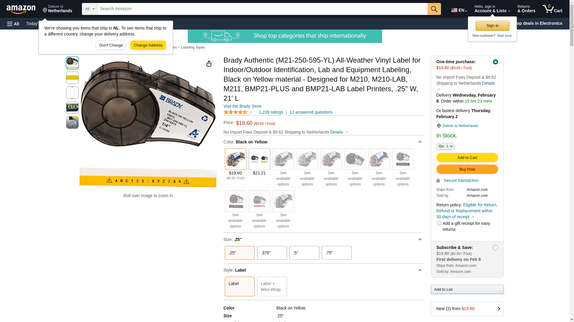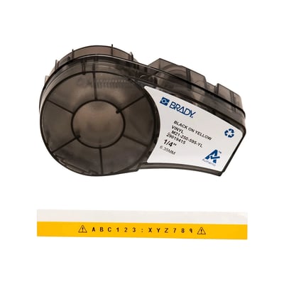 Brady Authentic (M21-250-595-YL) All-Weather Vinyl Label for Indoor/Outdoor ID, Lab and Equipment Labeling, Black on Yellow- For M210, M210-LAB, M211, BMP21-PLUS and BMP21-LAB Printers, .25" W, 21' L