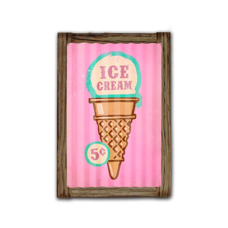 Past Time Signs PTSCWD007 Ice Cream Corrugated Framed Rustic Barn Wood Sign