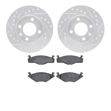 7302-74010, Rotors-Drilled and Slotted-Silver with 3000 Series Ceramic Brake Pads, Zinc Coated