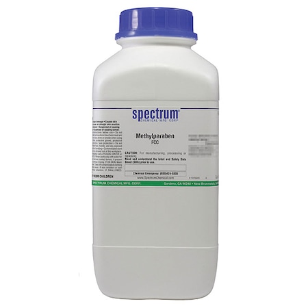 As an Amazon Associate, we earn from qualifying purchases. Methylparaben, FCC, 2.5kg Spectrum . M1187-2.5KG Gallery Attributes Brand name, Manufacturer name, ManufacturerSpectrum Attribute00152.15 Attribute01Chemical Not Regulated for Transport Attribute022.5 kg Attribute03C8H8O3 Attribute04Drum Attribute05Methylparaben, FCC Attribute06FCC Attribute07Plastic Attribute0899-76-3 Attribute0924 mo Attribute10United States AttributeKey00Molecular Weight AttributeKey01Shipping Restrictions AttributeKey02Chemical Container Size AttributeKey03Chemical Formula AttributeKey04Chemical Container Type AttributeKey05Item AttributeKey06Chemical Grade AttributeKey07Chemical Container Material AttributeKey08CAS Number AttributeKey09Shelf Life AttributeKey10Country of Origin (subject to change) Category, CategoryL1Test Instruments & Gauges CategoryL2Laboratory Supplies CategoryL3Laboratory Chemicals DimensionUnitinch GraingerSku6PND0 HazmatTrue Extra Product NameMethylparaben, FCC, 2.5kg WeightUnitlbs extendedLead4 extendedQty, qtyInStock0 moq, multiple, tierMinQty11 MPNM1187-2.5KG noShipToPR SKUG7927643 tierPrice1379.56 urlhttps://www.zoro.com/spectrum-methylparaben-fcc-25kg-m1187-25kg/i/G7927643/ Distributor offers SellerSKUMOQIn stockMultiplePrices ZoroG7927643111 @ $379.56 Grainger6PND0111 @ $460.75