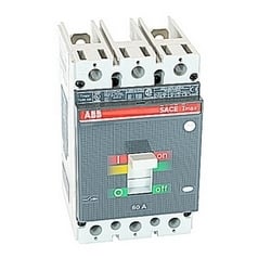 ABB Tmax Normal performance 2-pole molded case circuit breaker has 480 VAC, 500 VDC voltage rating and 60 A amp rating with a interrupt rating of 14 kA at 600 VAC. Brand Name|ABB#MFR Part Number|TS3N060TW-2#UPC|804325347013#UNSPSC|39121616#Item|Molded Case Circuit Breaker#Type|Normal Performance#Series|Tmax, TS3N#Voltage Rating|480 VAC, 500 VDC#Amperage Rating|60 A#Frequency Rating|50/60 Hz#Interrupt Rating|14 kA at 600 VAC#Frame|TS3-150A#Trip Type|Thermal/Magnetic#Trip Range|600 A Magnetic#Number of Poles|2#Actuator Type|Toggle#Mounting Type|Panel#Dimensions|6.7 in Height x 4.13 in Width x 4.07 in Depth#Standard/Approvals|CSA C22.2, UL 489
