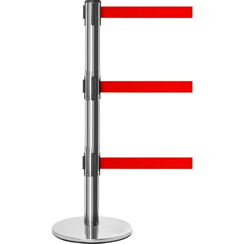QueuePro 250 Retractable Triple Belt Barrier, 40" Stainless Steel Post, 11' Red Belt