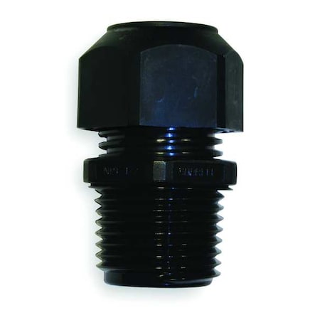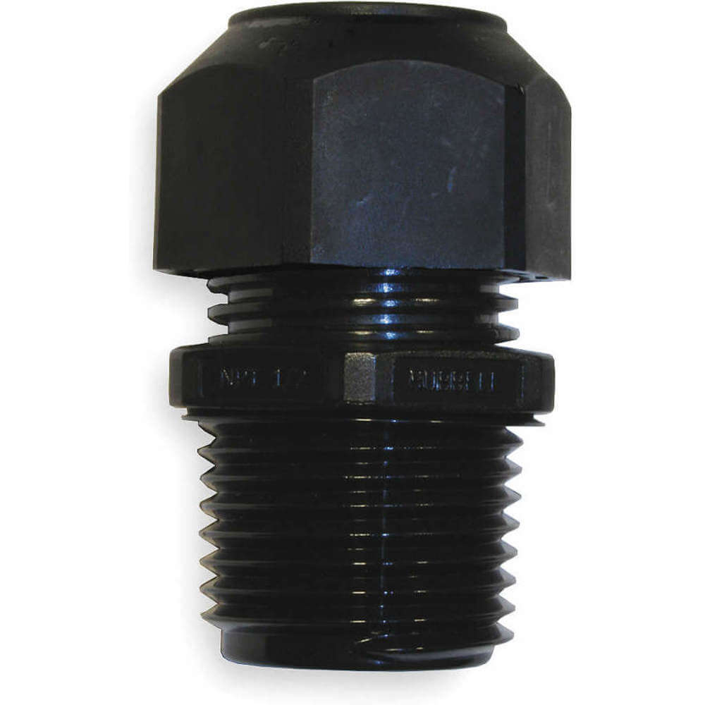 ' Cable Connector, Male, Connector Type Straight, Cord Dia. Range 0.38 In. to 0.50 In., Hub Trade Size 1/2 In., Material Nylon, Liquid Tight, Black, Length 2.03 In., Min. Throat Dia. 0.58 In., Standards UL Listed in Accordance with Standard 514B, CSA Certified, United States Coast Guard Approval, Title 46-Part 111 '