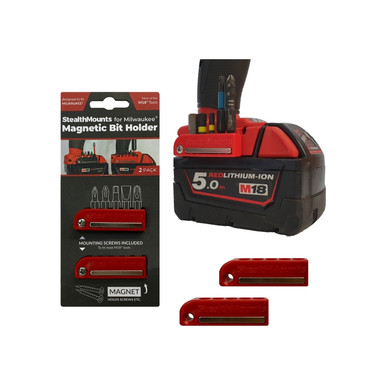 StealthMounts magnetic Bit Holder for Milwaukee M18 tools fix to the side of your tools to store impact bits and screws. The magnetic strip holds screws or extra bits and can fit up to 5 bits per holder.Highlights: Color : Red Made from strong injection moulded ABS plastic with a screw hole for mounting Magnet holds bi
