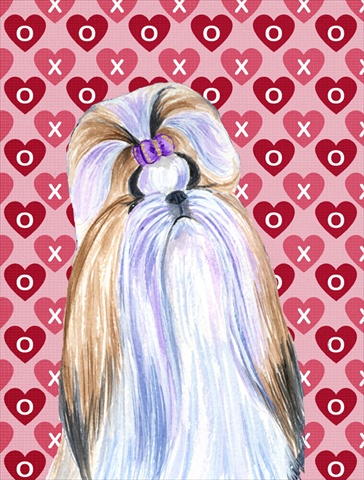 Carolines Treasures SS4465CHF 28 x 40 In. Shih Tzu Hearts Love And Valentines Day Portrait Flag Canvas, House Size